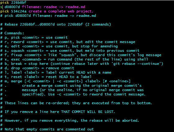 本次进入rebase后,用的的是 sqush s