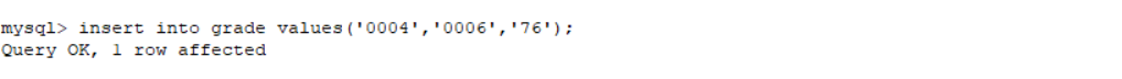 7.为grade表添加数据行:学号为0004、课程编号为0006、分数为76。