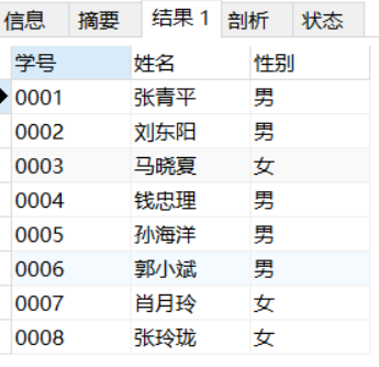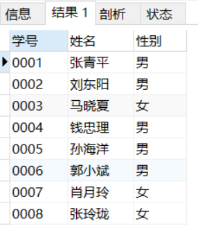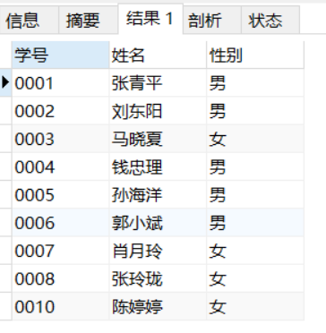 SELECT 学号,姓名,性别 FROM student_info;