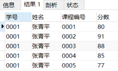 SELECT s.学号,姓名,课程编号,分数 FROM student_info s,grade g