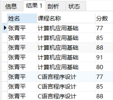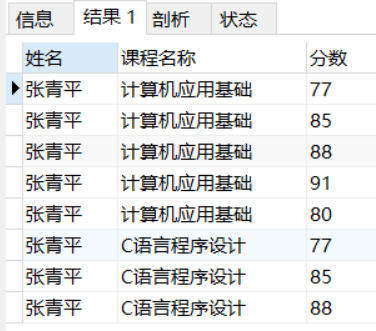 SELECT 姓名,课程名称,分数 from student_info s,grade g,curriculum