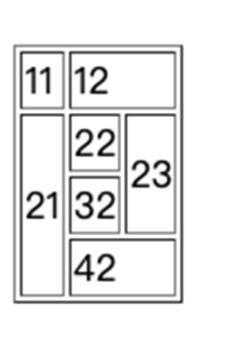 <table border="1"> <tr> <td>11</td> <td colspan="2">12</td> </tr> <tr> <td rowspan="3">21</td> <td>22</td> <td rowspan="2">23</td> </tr> <tr> <td>32</td> </tr> <tr> <td colspan="2">42</td> </tr> </table>