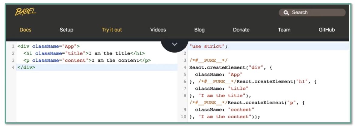 浏览器不会天然支持JSX,JSX会被编译为React.createElement(),React.createElement()将返回一个叫做"React Element"的JS对象