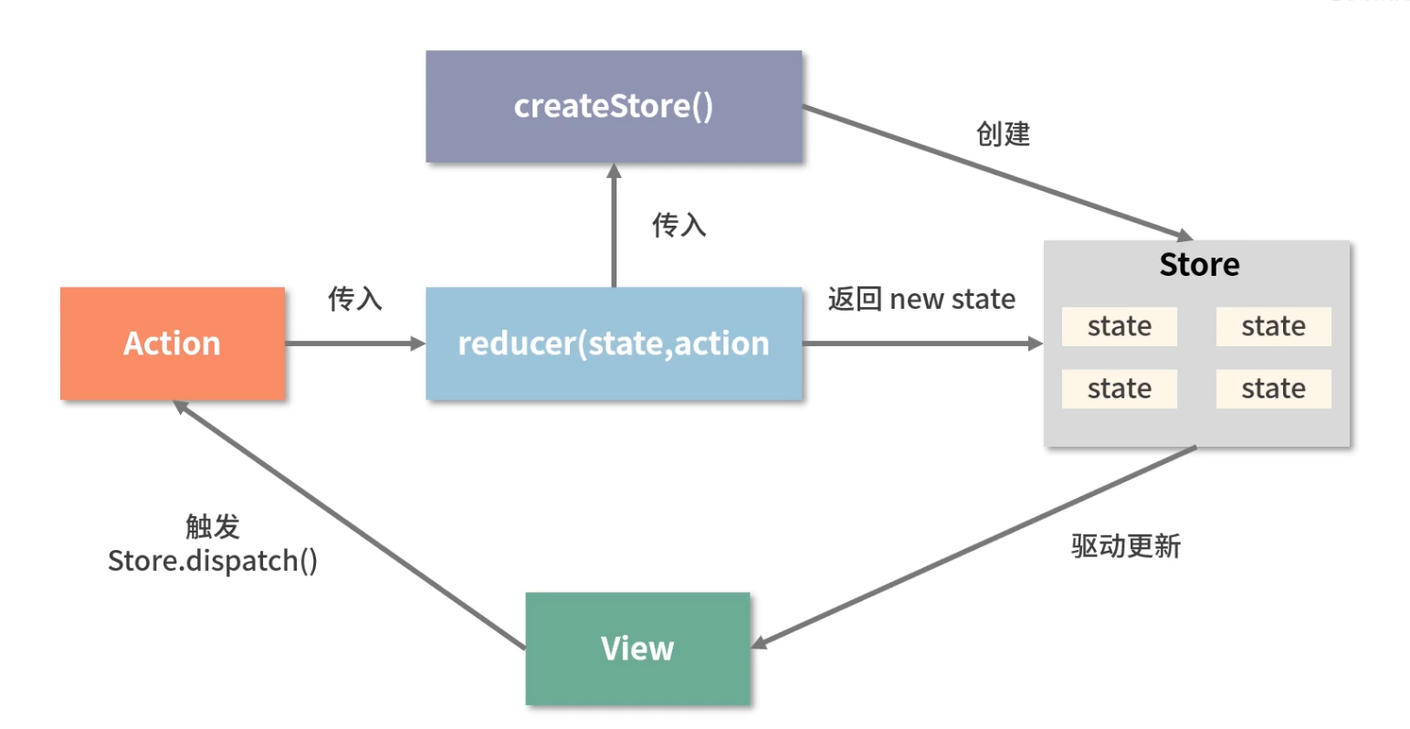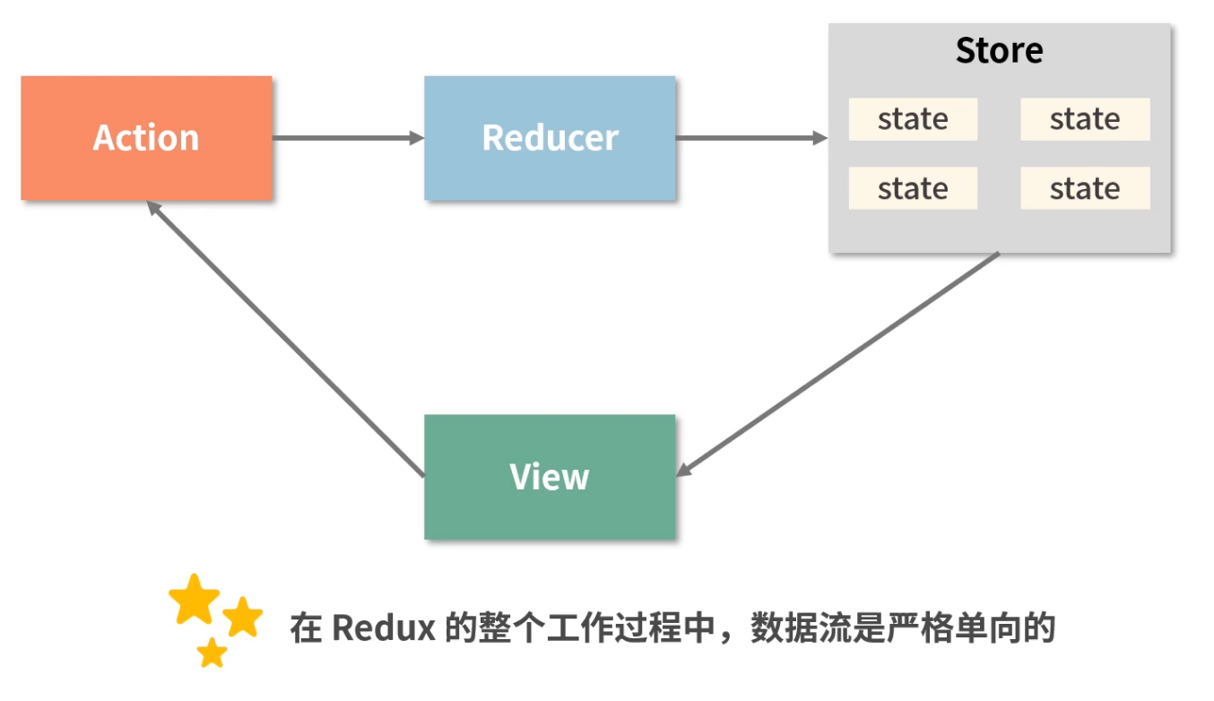 单向数据流 =》 当前组件的state以props的形式流动时只能流向组件树中比自己层级更低的组件