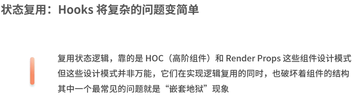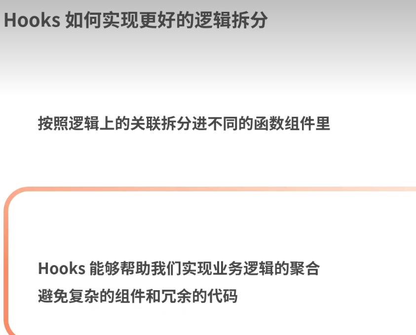 开发者编写的逻辑在封装后是和组件站在一起的,使得类组件内部的逻辑难以实现拆分和复用