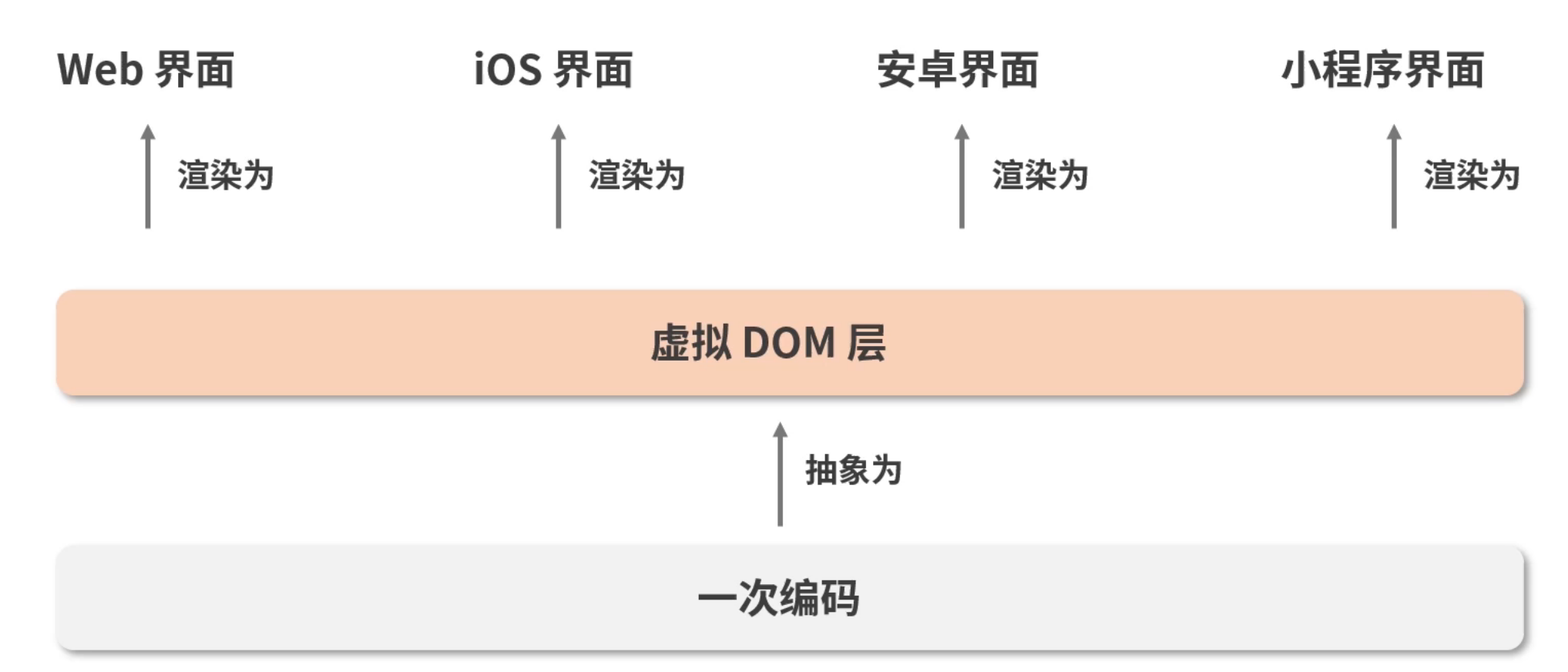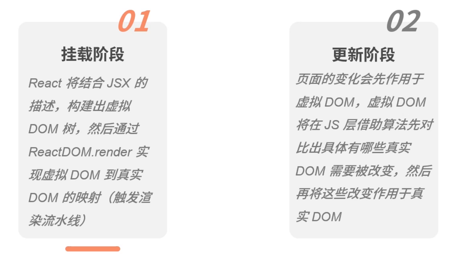 React将声明式的代码转换为命令式的DOM操作,将数据层面的描述映射到用户可见的UI变化中去