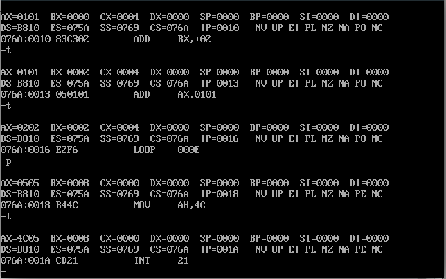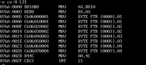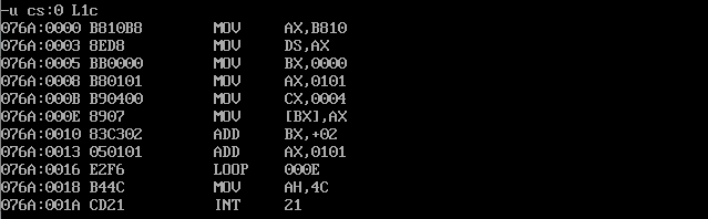 结合可执行文件中寄存器CX的值,使用u命令对ex1.exe进行精确反汇编