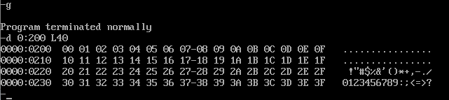 - 把填充的字数据,从0237H 改成0239H,再次保存后,汇编、链接、运行,观察结果。