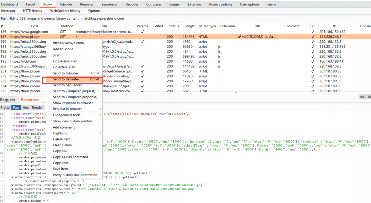 抓取网页并分析 ,Repeater 可让您手动重新发送单个HTTP 请求