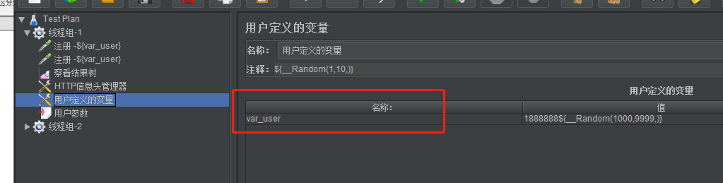 变量: 用户定义变量,用户参数 ---全局变量,作用于整个测试计划