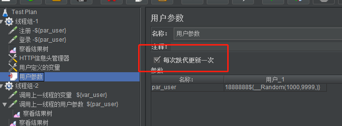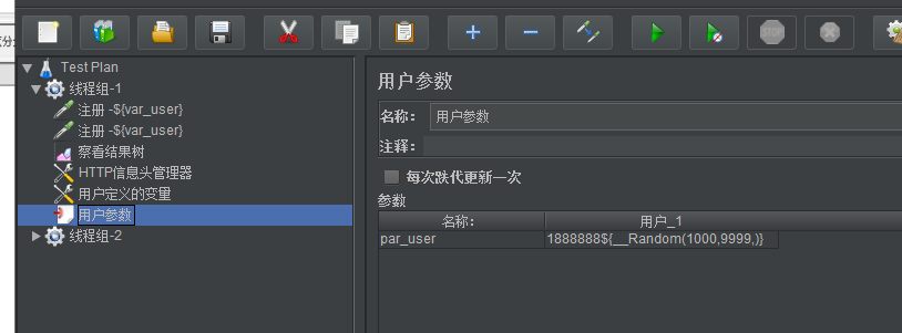 用户参数 作用域: 作用于当前线程组或当前的取样器,在启动运行时,获取一次值,在运行过程中,还会动态获取值