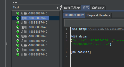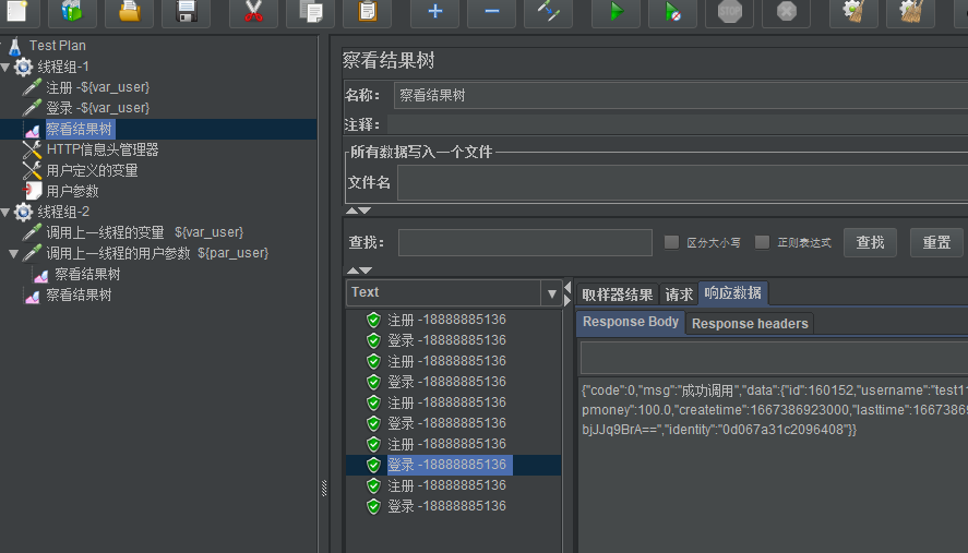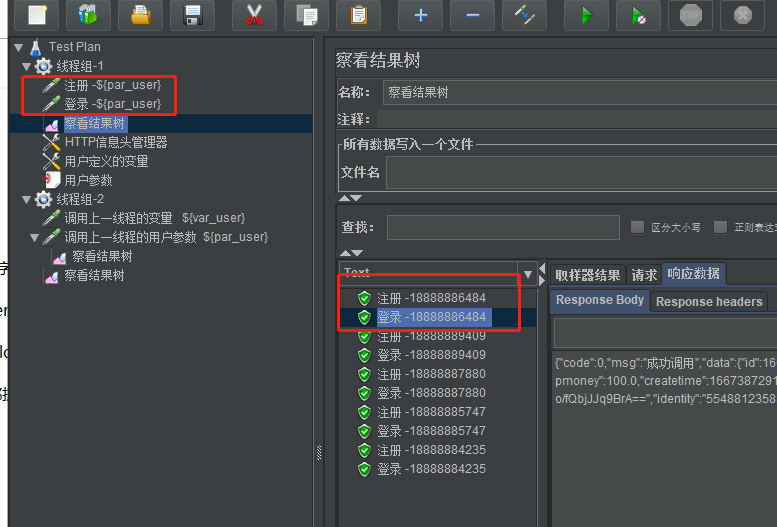 答案是:5次注册成功,0次登录失败 ,因为 用户参数 在运行过程中会动态获取信息