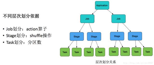 这里有人可能不理解Stage和task,下图就是Spark的作业划分层次: