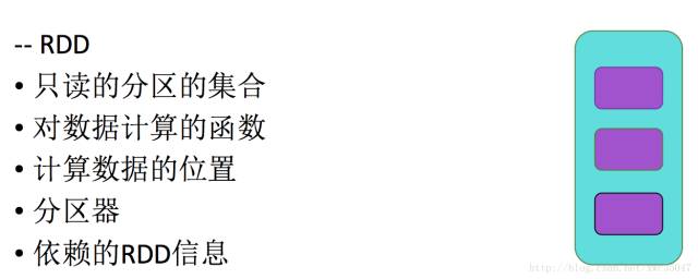 RDD是分布式数据的逻辑抽象,物理数据存储在不同的节点上,但对用户透明,用户不需要知道数据实际存在哪台机器。RDD包含的内容下图所示: