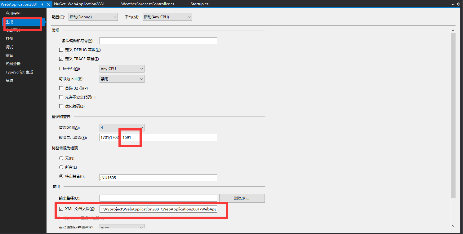 var xmlPath = Path.Combine(basePath, "WebApplication2881.xml");//这个就是刚刚配置的xml文件名