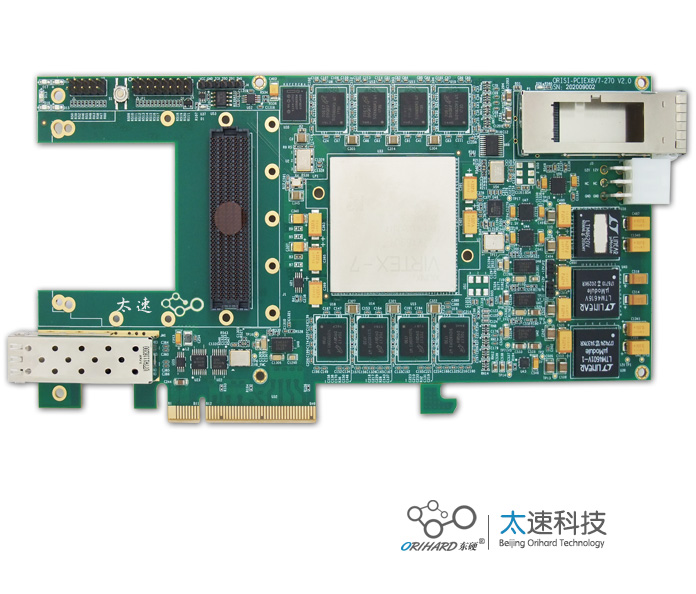 本板卡基于FPGA JFM7VX690T36 芯片,支持PCIeX8、两组 64bit DDR3容量8GByte,HPC的FMC连接器,板卡支持各种FMC子卡扩展。软件支持windows,Linux操作系统。