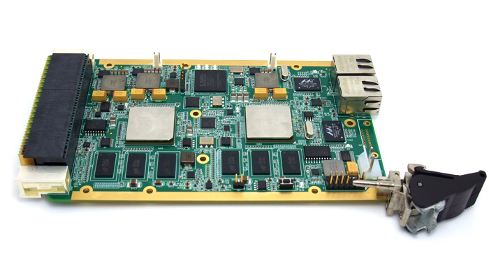 该板卡是由我公司自主研发的基于3U VPX架构的信号处理板,该处理板包含2片 FT-M6678 DSP芯片,1片 Spartan-3系列XC3S200AN配置芯片,两片DSP分别有1路RapidIO x4连接至VPX背板,两片DSP之间通过Hyperlink x4和SGMII互联。每片DSP外挂2GB DDR3 SDRAM、32MB Nor Flash,512Kb EEPROM和SPI Flash。