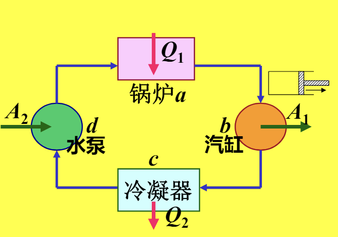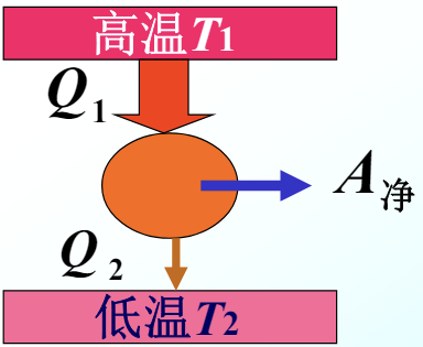 根据能量守恒定律,有 \(A_净 = Q_1- \mid Q_2 \mid\) ,这里取绝对值避免符号问题。