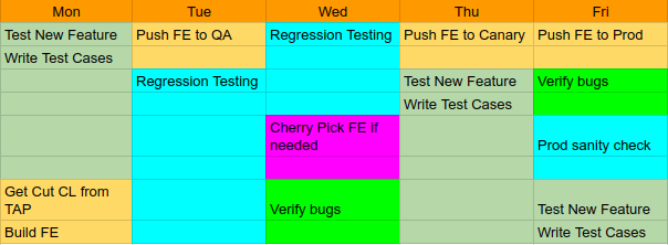 确定了上面的流程,QA团队一周的时间分配自然也就有了