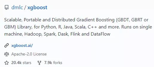 https://github.com/dmlc/xgboostXGBoost 在 GitHub 已获得 20.4 k Star。