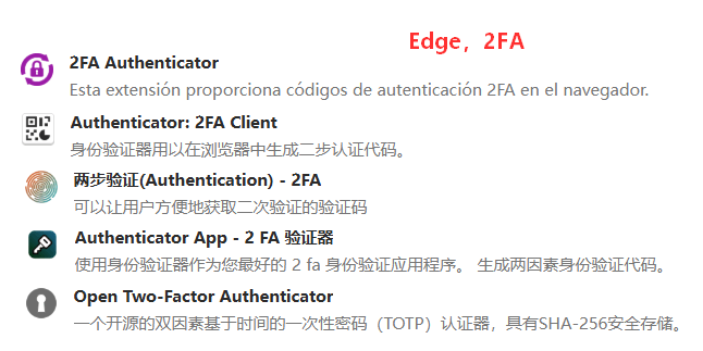 说明 身份验证器用以在浏览器中生成二步认证代码。