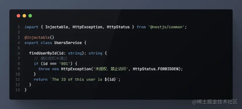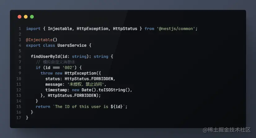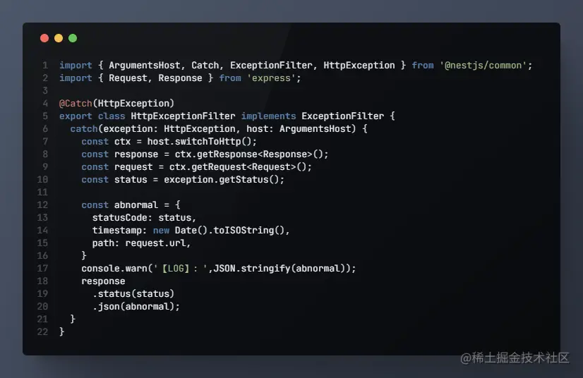 以上就是 Nest 中异常类及异常过滤器的自定义及使用,异常处理在服务端开发中尤为重要,合理的进行异常的抛出和捕获可以体现出项目架构的合理和健壮性。
