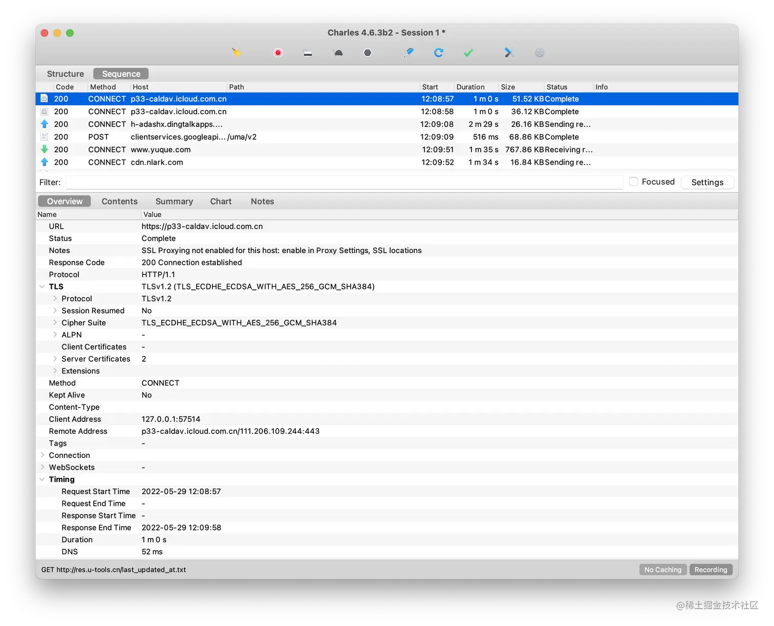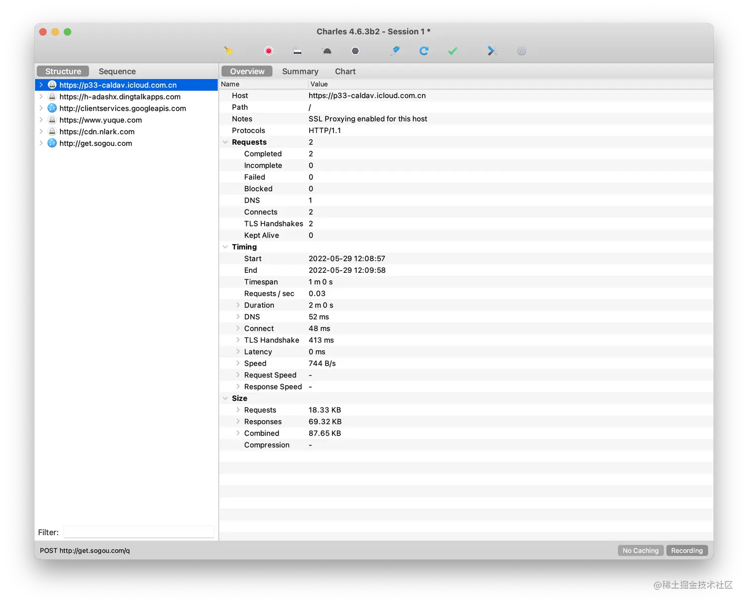 注:上面的配置无误,Charles 将开始输出 macOS 中的请求信息了。