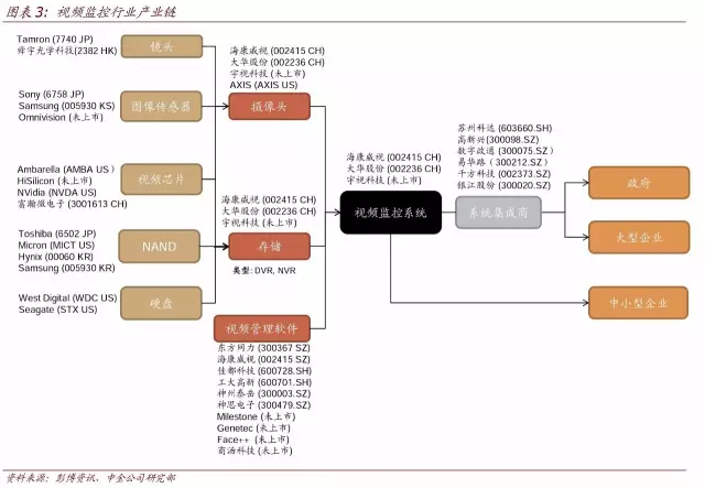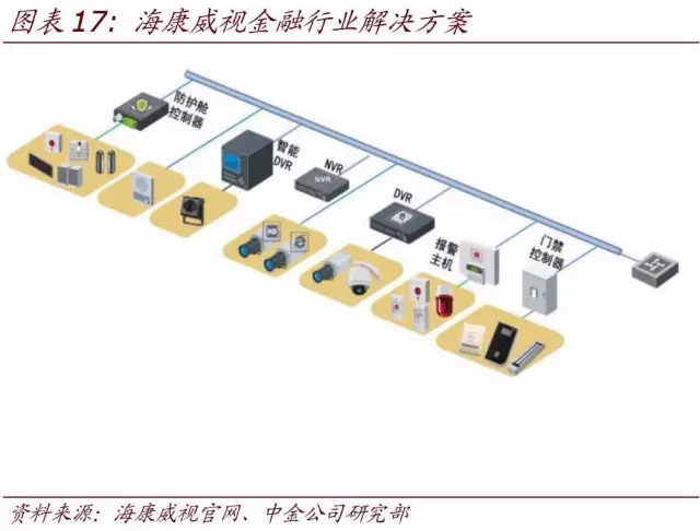 海康威视:针对公安行业、交通行业、金融行业、司法行业、能源行业、智能楼宇行业、 文教卫生等七大行业分别开发了各自的解决方案。根据 IHS 的统计,海康的 iVMS 系列 产品中国市场占有率 23%。