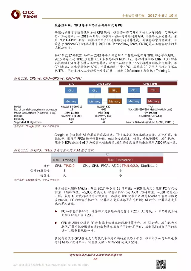 【划重点】本报告干货满满,我们挑出了一张极具代表性的内容:人工智能的两个维度,以及围绕这两个维度展开的竞争,即软件开发框架和计算芯片。对当下最热门的议题——TPU进行详细解读。