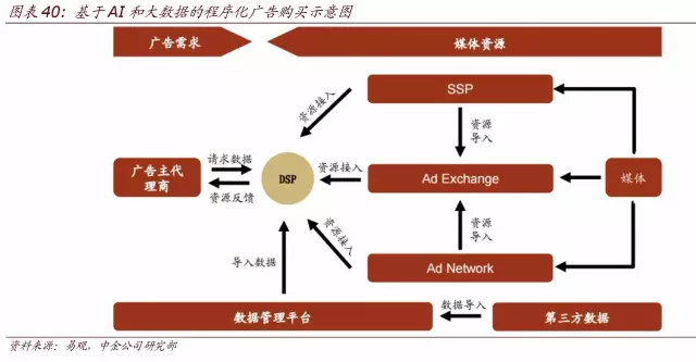 不仅仅是受众定位一侧,在广告投放一侧,AI 也在不断重构广告主的投放方式与投放策 略。在传统的媒体采买模式中(即人工选取投放的媒体渠道和预算),往往是“一篮子” 的覆盖,即使能够进行一定程度上的细分,也无法完成实时定价和智能匹配。而随着广 告主对营销效果和 ROI 的追求不断推动,程序化购买的出现利用 AI 自动化技术实现了破局。
