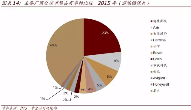我们认为,一方面受益于中国视频监控行业规模在全球占比较高,另一方面,中国龙头 公司的技术和产品的竞争力有了极大的提升。我们预计,这种趋势仍会保持,中国龙头 公司的全球市占率将继续提升。
