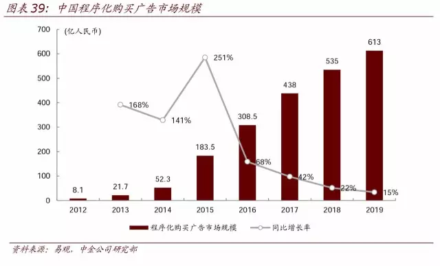 自 2012 年以来,中国互联网广告市场经历了年复合增长率 39%的高速增长期。主要的 驱动力来自于传统媒体的式微带来的预算转移、移动设备的大爆发带来的新广告平台以 及更高 ROI 的新广告形式。根据 eMarketer 数据,2016 年互联网广告市场规模已经达到 404 亿美金,其中移动广告占比已经达到 35%。其中基于大数据的 AI 技术已经起到不小 的推动作用。