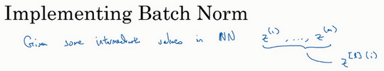 在神经网络中,已知一些中间值,假设有一些隐藏单元值,从\(z^{(1)}\)到\(z^{(m)}\),这些来源于隐藏层,所以这样写会更准确,即\(z^{[l](i)}\)为隐藏层,\(i\)从1到\(m\),但这样书写,要省略\(l\)及方括号,以便简化这一行的符号。所以已知这些值,如下,要计算平均值,强调一下,所有这些都是针对\(l\)层,但省略\(l\)及方括号,然后用正如常用的那个公式计算方差,接着,会取每个\(z^{(i)}\)值,使其规范化,方法如下,减去均值再除以标准偏差,为了使数值稳定,通常将\(\varepsilon\)作为分母,以防\(σ=0\)的情况。