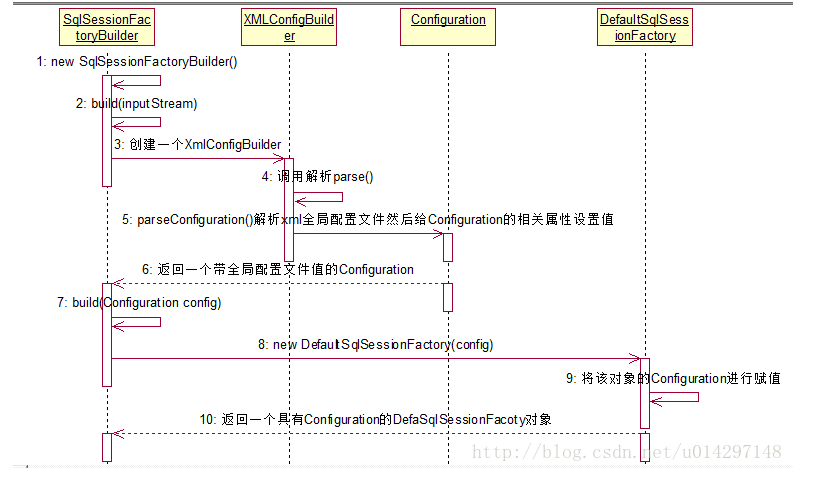解析InputStream流对象获得Configuration对象,然后用其创建SqlSessionFactory对象;