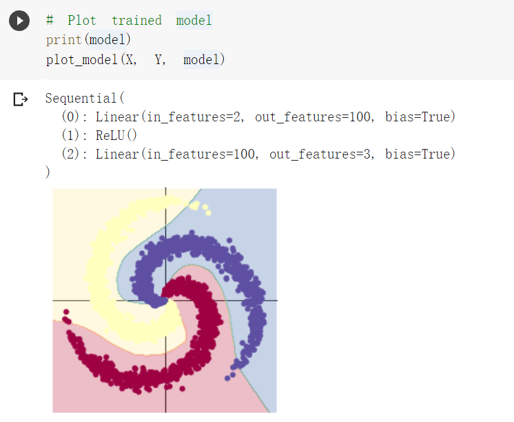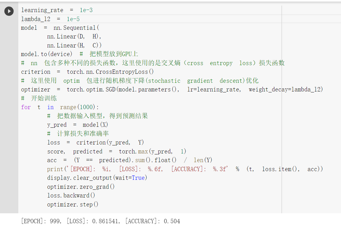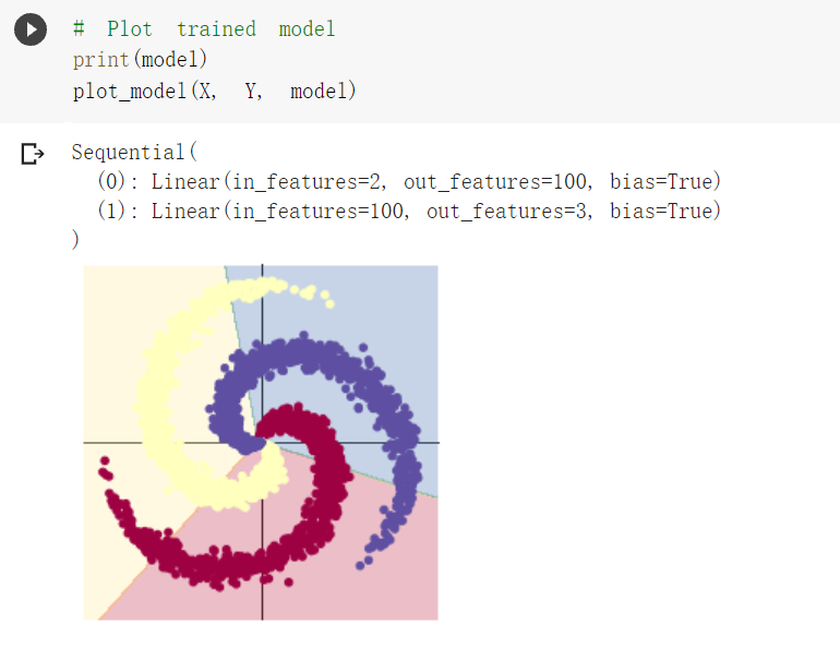 线性模型的准确率最高只能达到 50% 左右,对于这样复杂的一个数据分布,线性模型难以实现准确分类。
