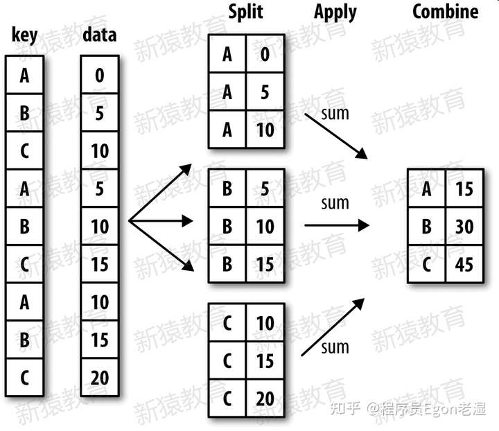 GroupBy当中自由度最高的方法就是apply,它会将待处理的对象拆分为多个片段,然后各个片段分别调用传入的函数,最后将它们组合到一起。