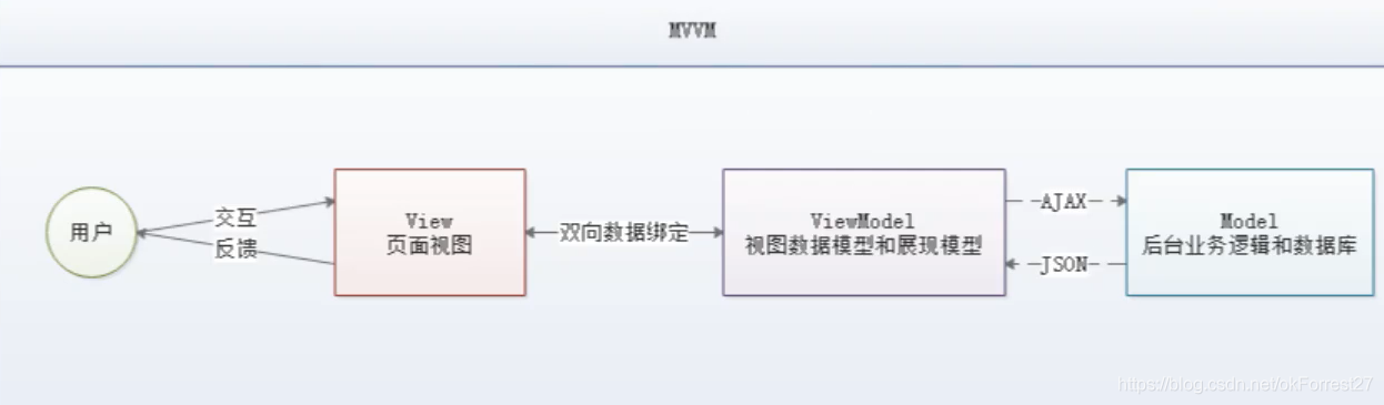 - ViewModel:连接视图和数据的中间件,Vue.js就是MVVM中的ViewModel层的实现者