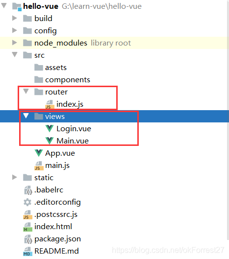 创建成功后用idea打开,并删除净东西 创建views和router文件夹用来存放视图和路由