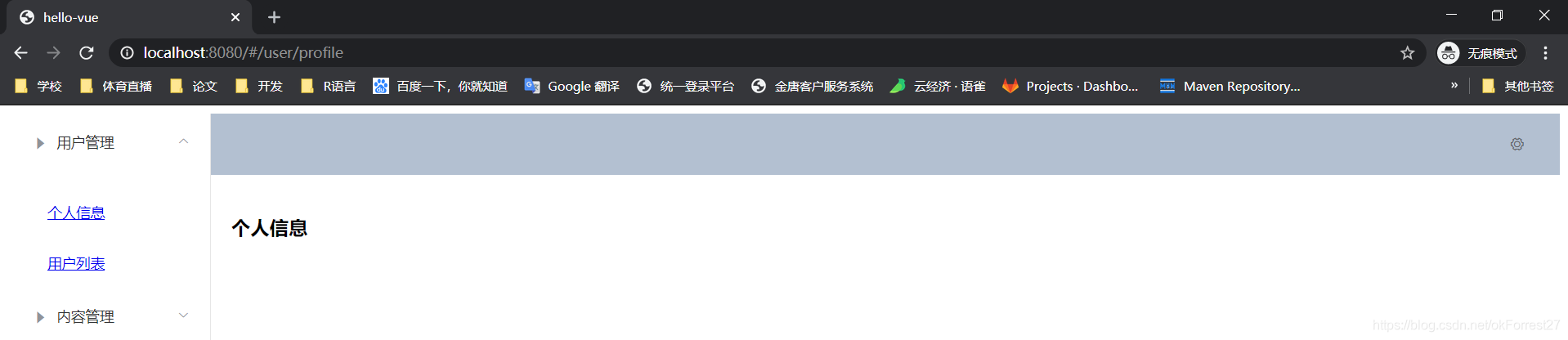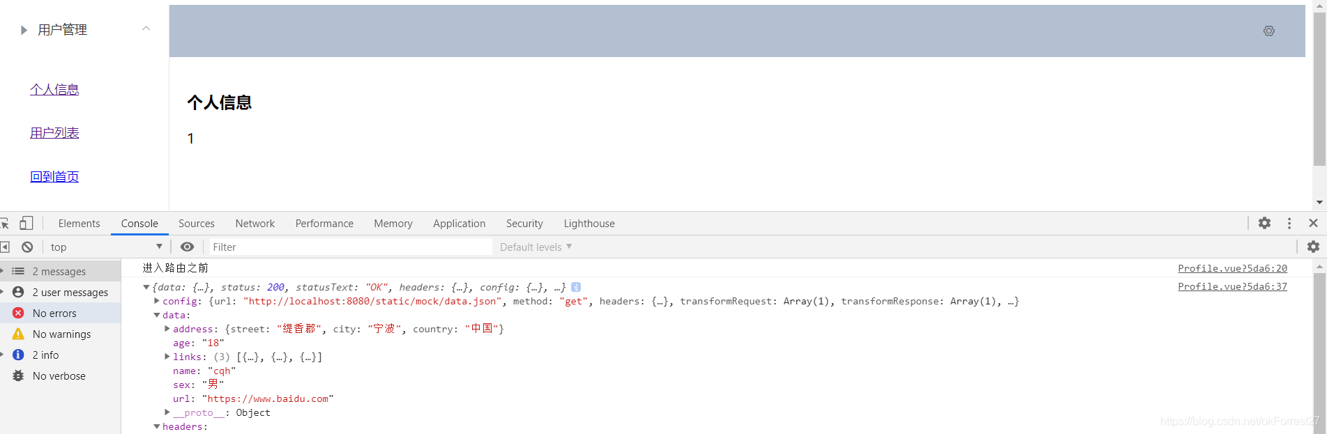 创建用户信息组件,在 views/user 目录下创建一个名为 Profile.vue 的视图组件