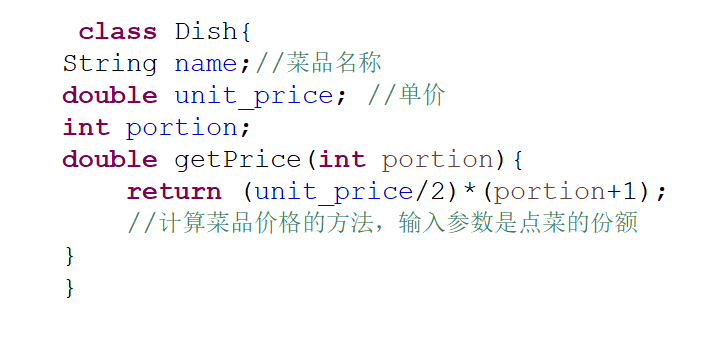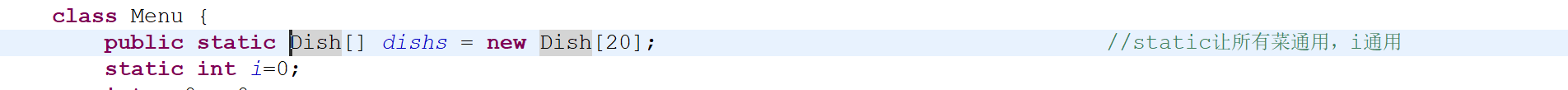 Dish类即为菜单中的菜品,也是Menu类的属性,