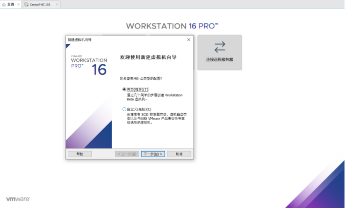 - 按照需要选择配置类型,初次学习时建议选择“典型”安装,好处在于直接使用模板,无需细节配置;老司机可以选项“自定义”安装,好处能够自定义虚拟机的兼容性;