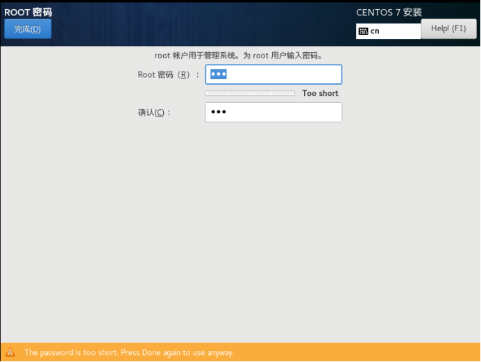 - 配置root用户的密码,创建系统用户并为系统用户设置密码--》完成等待几分钟;