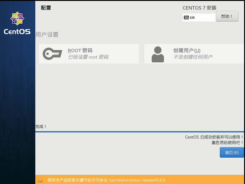 - 重启,使用账号:root、密码***即可进入系统,输入“cat /etc/redhat-release”即可看见新装操作系统版本信息,表示安装完成