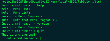 1.3、输入./test运行之前编译的程序,然后在程序中输入help查看程序提供的命令参数,但是发现输入quit时,程序没有识别出该命令。