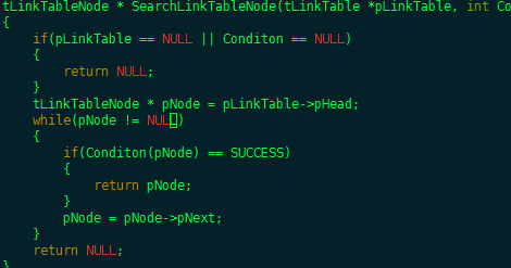 例如该实验中在SearchLinkTableNode函数中,Conditon(tLinkTableNode * pNode)调用了回调函数