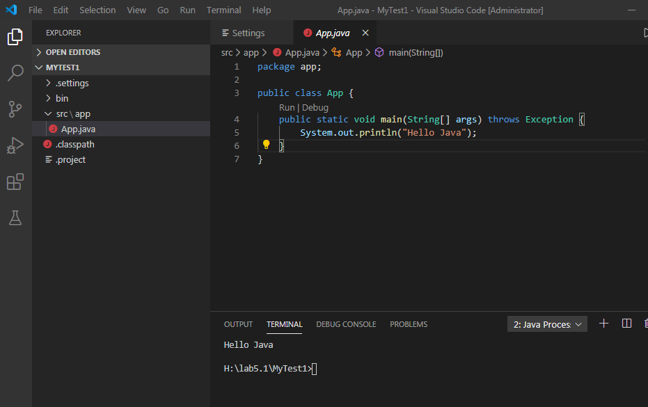 在命令指令中查找java,然后创建Java项目,可以得到一个默认的Java project