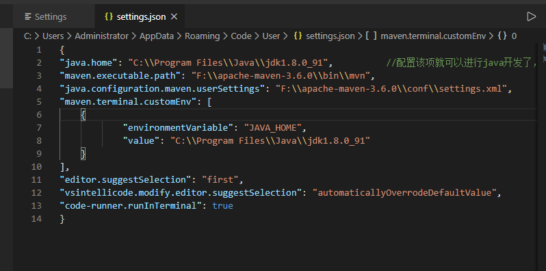 1.2vscode上的maven配置:在设置中找到maven的settings.json,修改如下: