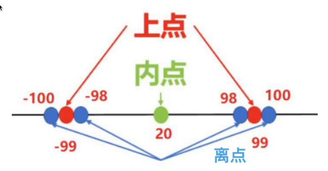 离点:开内避外(考虑开闭区间,开区间选择内部离点,闭区间选择外力点)