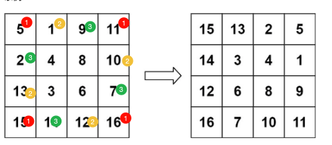 解题思路:要有宏观的思路,策略是一圈一圈的转换。然后每一圈,又分成一个一个的小组进行转换,见下图