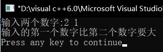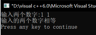 #include<iostream> using namespace std; enum ErrorCode{error_A,error_B}; int main() { int x,y,z; cout<<"输入两个数字:"; cin>>x>>y; try { if(x==y) throw error_A; if(x>y) throw error_B; cout<<x+y<<endl; } catch(ErrorCode e) { if(e==error_A) cout<<"输入的两个数字相等"<<endl; else if (e==error_B) cout<<"输入的第一个数字比第二个数字要大"<<endl; } return 0; }